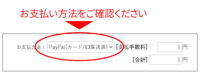 ■選択した区分の下のお支払い方法で「Paypal/(カード/口座決済)」または、