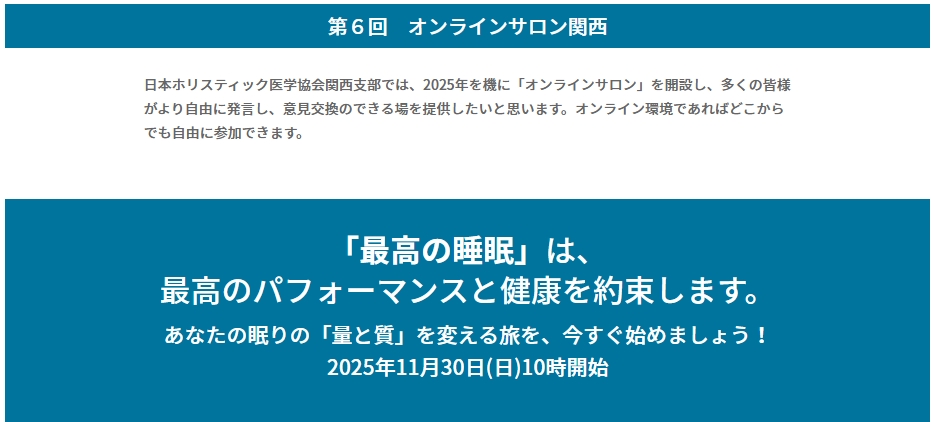 第6回 ホリスティック関西オンラインサロン 2025年11月30日(日) 10時~